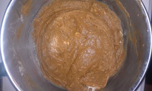 4. In a separate bowl, cream the earth balance, sugar, and apple sauce until fluffy.  Add molasses, cornstarch, and pumpkin puree and beat until combined.