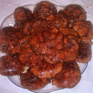 8. When cookies are done, let cool for about 2 minutes, then spoon or drizzle glaze on cookies.