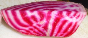 A few weeks ago I posted my Take Out Chinese at Home recipe and I was craving it again the other night!  I wasn’t sure what to title this recipe; Joey sugeested “Best Chinese Food EVER” since he said this was his favorite Asian meal I’ve made to date; it DOES have a ring to it 😉 .  The beauty of  making this at home (besides saving a little $$ from eating out) is you know exactly what ingredients you’re using and have the satisfaction of creating a beautiful nutritious meal.  I used chioggia beets (another one of my favorites from Migliorelli Farm) in my fried rice and steamed their greens to balance and complete the meal.  These beets are uniquely beautiful with their red and white stripes.