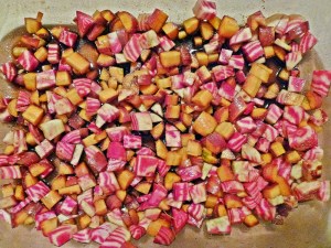 • 1 cup diced chioggia beets (optional) – save your beet greens!! We’ll saute these for your greens (full of calcium and vitamin C!).