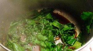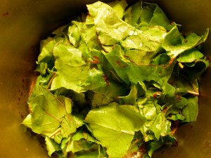 2. Add your beet greens and steam until wilted.  Like most greens, they’ll cook down (a lot).