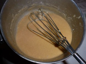 - Whisk all ingredients together in a pot and bring to a boil, stirring occasionally. Once boiling, turn heat to low and let thicken, still stirring occasionally.